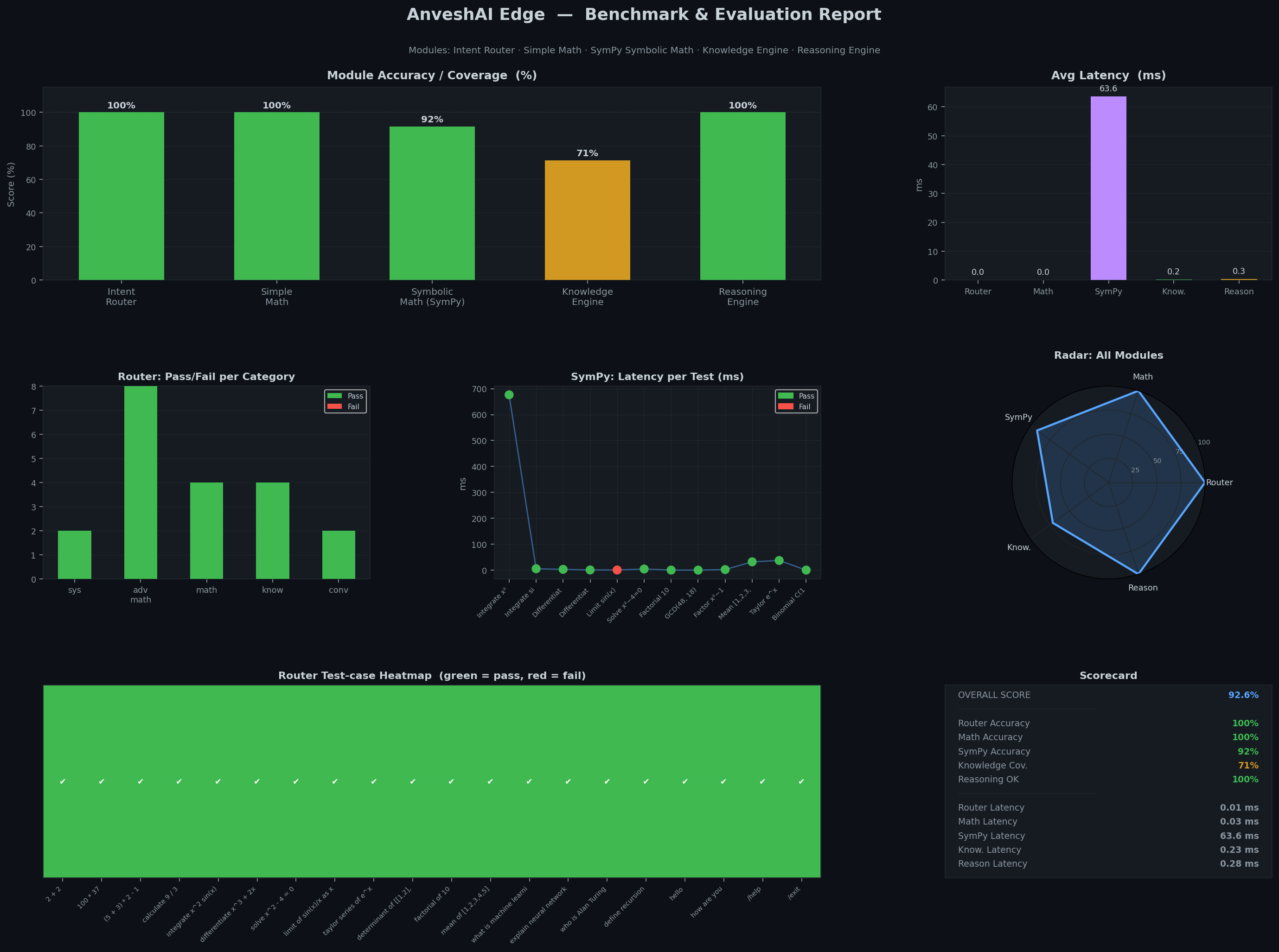AnveshAI Edge is a terminal-based AI assistant designed to run entirely on-device (CPU only). It combines a rule-based symbolic math engine, a local knowledge base, and a compact large language model into a unified hierarchical pipeline. A dedicated chain-of-thought reasoning engine decomposes every problem before the LLM is invoked, dramatically improving answer quality and reducing hallucinations.
