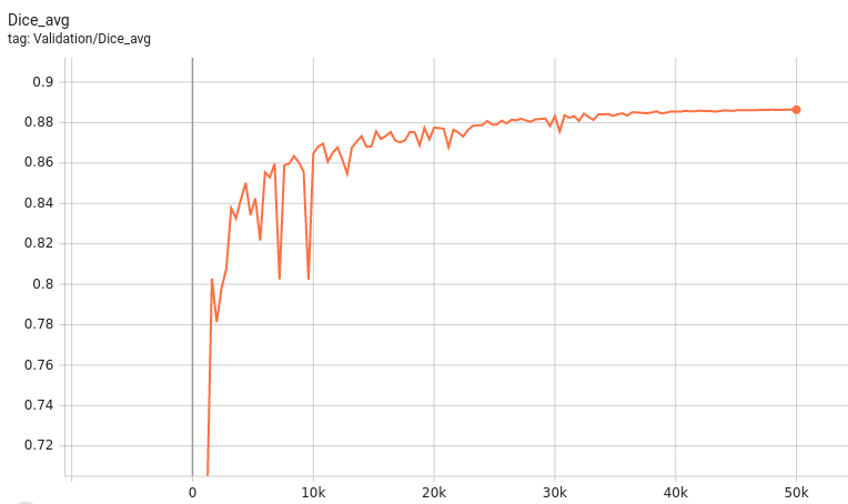 This model achieves the following Dice score on the validation data (our own split from the training dataset):