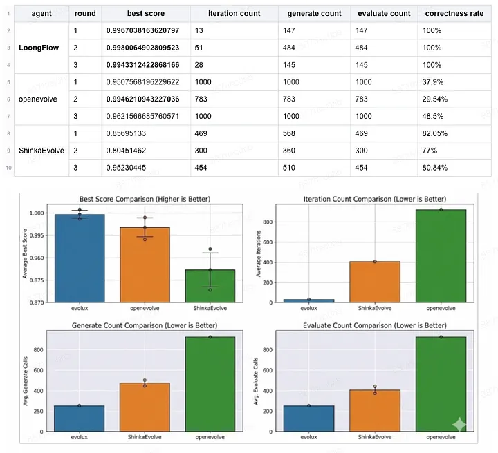 LoongFlow, by contrast, demonstrates causal reasoning. Because its Summary module analyzes why a previous attempt failed, it doesn't waste compute on repeating mistakes. The result is an agent that is not only smarter but significantly cheaper to run.