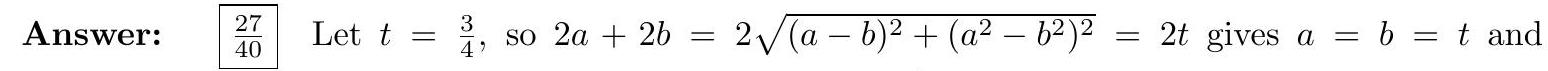+(\sqrt{2}(a-b)) \cdot(\sqrt{2}(a+b))=2\left(a^{2}-b^{2}\right)=2 \sqrt{a^{4}-2 a^{2} b^{2}+b^{4}}=2 \sqrt{100-2 \cdot 4^{2}}=4 \sqrt{17}