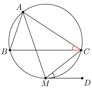 +On the other hand, triangle $A D M$ is similar to triangle $C D T$ since $\angle A M D \cong \angle C T D$ and $\angle D A M \cong$ $\angle D C T$ and thus $A M / C T=A D / C D$. It follows that