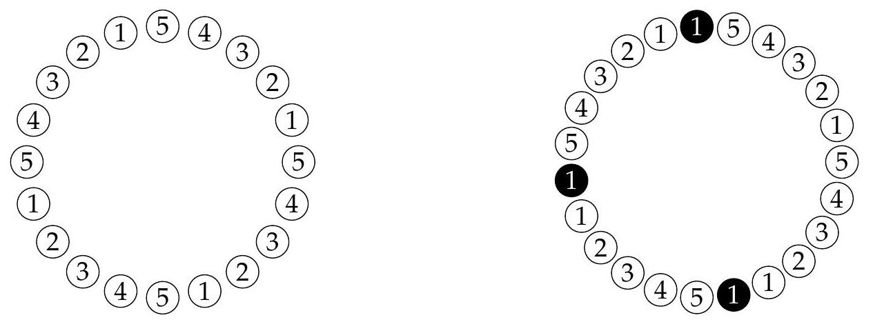 {"year": "2021", "problem_label": "5", "tier": 1, "problem": "Soit $m$ et $n$ deux entiers tels que $m>n \\geqslant 3$. Morgane a disposé $m$ jetons en cercle, et s'apprête à les peindre en utilisant $n$ couleurs distinctes. Elle souhaite que, parmi $n+1$ jetons consécutifs, il y ait toujours au moins un jeton de chacune des $n$ couleurs. Si elle peut y parvenir, on dira que l'entier $m$ est $n$-coloriable.\nDémontrer que, pour tout entier $n \\geqslant 3$, il n'existe qu'un nombre fini non nul d'entiers $m$ qui ne sont pas $n$-coloriables, et trouver le plus grand entier $m$ qui ne soit pas $n$-coloriable.", "solution": "Tout d'abord, si $m \\geqslant n^{2}-n$, Morgane peut réaliser son souhait en procédant comme suit, montrant au passage que $m$ est $n$-coloriable.\nSoit $a$ le résidu de $m$ modulo $n$, c'est-à-dire le plus petit entier naturel tel que $a \\equiv m(\\bmod n)$. Morgane commence par placer $m-a$ jetons, qu'elle choisit de couleurs $1,2, \\ldots, n$, puis de nouveau $1,2, \\ldots, n$, etc. Ainsi, elle a placé $(m-a) / n \\geqslant n-1 \\geqslant a$ jetons de chaque couleur, comme illustré ci-dessous (à gauche) dans le cas où $n=5$ et $m=23$.\n\n\nPuis elle choisit $a$ jetons de couleur $m$, et insère ajoute un nouveau jeton de couleur 1 juste entre ces jetons et les jetons de couleur 1 qui suivent, comme illustré ci-dessus (à droite) dans le cas où $n=5$ et $m=23$ : nous avons dessiné en noir (avec texte blanc) les jetons ainsi insérés.\nAprès avoir procédé de la sorte, Morgane constate que toute suite de $n+1$ jetons consécutifs contient au moins $n$ jetons consécutifs de la configuration qu'elle avait obtenue avant d'insérer ses $a$ jetons surnuméraires, et ces $n$ jetons sont bien de chacune des couleurs $1,2, \\ldots, n$. Comme annoncé, l'entier $m$ est donc bien $n$-coloriable.\nRéciproquement, supposons que, partant de l'entier $m=n^{2}-n-1$, Morgane a pu parvenir a ses fins. Puisque $m / n<n-1$, l'une des couleurs, disons la couleur 1 , est représentée au plus $n-2$ fois, et au moins une fois. Morgane isole alors un jeton de couleur 1, puis sépare les $m-1=(n+1)(n-2)$ jetons restants en $n-2$ groupes de $n+1$ jetons consécutifs. Puisqu'elle est satisfaite, chacun de ces groupes contient au moins un jeton de couleur 1 : cela lui fait un minimum de $n-1$ jetons de couleur 1 en tout, ce qui est absurde!\nAinsi, l'entier $m=n^{2}-n-1$ n'est pas $n$-coloriable, et il s'agit du plus grand entier qui ne soit pas $n$-coloriable.\n\nRemarque: En adaptant le raisonnement ci-dessus, on peut démontrer qu'un entier $m$ est $n$-coloriable si et seulement s'il existe des entiers naturels $k$ et $\\ell$ tels que $m=k n+\\ell(n+1)$, c'est-à-dire si $m \\leqslant(n+1)\\lfloor m / n\\rfloor$.\n\nCommentaire des correcteurs Le problème était composé de deux parties: dans l'une, il fallait démontrer que tout entier $m \\geqslant n^{2}-n$ était de la forme $a n+b(n+1)$, donc $n$-coloriable;\ndans l'autre, il fallait démontrer que l'entier $m=n^{2}-n-1$ n'était pas $n$-coloriable. Chacune de ces deux parties, prise isolément, était accessible, mais beaucoup d'élèves ne sont venus à bout que de l'une ou l'autre de ces parties. En particulier, nombreux sont les élèves qui, après avoir triomphé d'une des deux parties, ont prétendu réutiliser leurs arguments pour l'autre partie, alors qu'une telle stratégie échouait de manière quasi-systématique.\nAinsi, plusieurs élèves ont trouvé un algorithme de coloriage pour $m$ grand, et ont bien démontré que cet algorithme échouait pour $m=n^{2}-n-1$, mais il aurait évidemment pu être concevable que $m=n^{2}-n-1$ soit colorié d'une autre manière. De même, certains élèves ont trouvé une condition nécessaire sur $m$ pour être $n$-coloriable, démontrant ainsi que $m=n^{2}-n-1 \\mathrm{n}^{\\prime}$ était pas $n$-coloriable, mais rien $\\mathrm{n}^{\\prime}$ indiquait que cette condition était également suffisante, et donc que les entiers $m \\geqslant n^{2}-n$ étaient $n$-coloriables.", "problem_match": "\nExercice 5.", "solution_match": "\nSolution de l'exercice 5"}