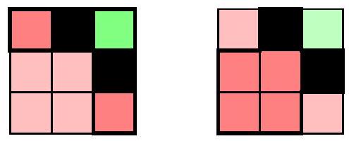 {"year": "2021", "problem_label": "7", "tier": 1, "problem": "Soit $n \\geqslant 2$ un entier. Une grenouille se déplace dans une grille de $3 n \\times 3 n$ cases, sautant chaque fois d'une case vers la case située juste au-dessus ou juste à droite. Elle souhaite aller du coin en bas à gauche, marqué d'un $S$, au coin en haut à droite, marqué d'un F. Malheureusement, certaines cases sont piégées, et si la grenouille saute sur une telle case, elle y restera prisonnière.\nOn dit qu'un ensemble de cases piégées est bloquant s'il empêche la grenouille d'aller de la case $S$ à la case $F$. On dit aussi qu'un ensemble bloquant est minimal si, dès lors que l'on retire le piège de l'une des cases de cet ensemble, notre ensemble n'est plus bloquant.\nPar exemple, les cases noires de la grille ci-dessous forment un ensemble bloquant minimal.\n\na) Démontrer qu'il existe un ensemble bloquant minimal qui contient au moins $3 n(n-1)$ cases.\nb) Démontrer que tout ensemble bloquant minimal contient au plus $3 n^{2}$ cases.", "solution": "Colorions notre grille en trois couleurs:\n$\\triangleright$ en noir, les cases piégées;\n$\\triangleright$ en rose, les cases non piégées auxquelles la grenouille peut accéder depuis la case S;\n$\\triangleright$ en vert, les cases non piégées depuis lesquelles la grenouille peut accéder à la case $F$.\nNotons que notre grille contient éventuellement des cases incolores.\nNotre ensemble de cases piégées est bloquant si et seulement si nulle case n'est à la fois rose et verte, c'est-à-dire si nulle case verte n'est située juste au-dessus ou juste à droite d'une case rose. Notre ensemble bloquant est donc minimal s'il consiste en la seule case $S$, ou bien en la seule case $F$, ou bien ne contient aucune de ces cases et si toute case noire est située juste au-dessus ou juste à droite d'une case rose, et juste en-dessous ou juste à gauche d'une case verte.\nDe la sorte, on vérifie aisément que la construction ci-dessous nous fournit un ensemble bloquant minimal composé de $n(3 n-2) \\geqslant 3 n(n-1)$ cases piégées.\n\n\nOn démontre maintenant que tout ensemble bloquant minimal contient au plus $3 n^{2}$ cases. Étant donné un tel ensemble bloquant minimal, soit $r$ le nombre de cases roses, $p$ le nombre de cases piégées et $v$ le nombre de cases vertes. Au vu de la minimalité de notre ensemble bloquant, et à part la case S , chaque case rose ou noire se trouve juste au-dessus ou juste à gauche d'une case rose. On en déduit que $r-1+p \\leqslant 2 r$, c'est-à-dire que $p \\leqslant r+1$. On démontre de même que $p \\leqslant v+1$, et on en conclut que $3 n^{2} \\geqslant(r+p+v) / 3 \\geqslant p-2 / 3$, donc que $p \\leqslant 3 n^{2}$.\n$\\underline{\\text { Solution alternative } n^{\\circ} 1}$ Voici une manière alternative, plus progressive mais nettement plus longue, de démontrer que tout ensemble bloquant minimal contient au plus $3 n^{2}$ cases. On suppose évidemment que cet ensemble n'est pas constitué de la seule case $S$ ou de la seule case $F$, auquel cas on aurait déjà gagné.\nOn aimerait bien découper dans la grille $3 n \\times 3 n$ des rectangles $3 \\times 1$ ou $1 \\times 3$ contenant chacun une case de chaque couleur, de sorte que les cases n'appartenant à aucun rectangle ne soient pas piégées. On disposerait alors de la borne supérieure tant désirée.\nOn commence par démontrer que la grille $3 n \\times 3 n$ ne contient aucune case incolore. En effet, si une case rose $(x, y)$ a pour voisine une case incolore, il s'agit de sa voisine de gauche ou du dessous. Quitte à effectuer une symétrie par rapport à la diagonale (SF), on suppose que c'est la voisine du dessous, c'est-à-dire $(x, y-1)$. On démontre alors par récurrence sur $k$ que les cases $(x-k, y)$ et $(x-k, y-1)$ sont rose et incolore, comme illustré ci-dessous, les cases incolores étant simplement laissées en blanc.\n\n\nEn effet,\n$\\triangleright$ la case $(x-k-1, y)$ est nécessairement rose, ce sans quoi aucune des voisines de gauche et du dessous de la case $(x-k, y)$ ne serait rose;\n$\\triangleright$ la case $(x-k-1, y-1)$ n'est ni rose (sinon sa voisine de droite serait rose), ni verte ou noire (sinon l'une de ses voisines du haut ou de droite serait verte).\nEn particulier, la case $(0, y)$ est rose tandis que la case $(0, y-1)$ est incolore, ce qui est absurde. Puis, si une case noire $(x, y)$ a pour voisine de gauche ou du dessous une case incolore, on suppose toujours, à symétrie près, que cette case incolore est $(x, y-1)$. Mais alors $(x-1, y)$ est rose et $(x-1, y-1)$ est incolore, ce qui est impossible.\nEnfin, quitte à effectuer une symétrie par rapport à la médiatrice de [SF] et à échanger les couleurs rose et verte, une case incolore ne peut pas non plus se situer en haut ou à droite d'une case noire, ni être adjacente à une case verte. Ainsi, nulle case n'est incolore.\nOn entreprend désormais de démontrer que chaque case noire, sauf les éventuels coins noirs, a soit une case rose à sa gauche et une case verte à sa droite, soit une case rose en-dessous et une case verte au-dessus. Dans les deux cas, on dira que ces trois cases forment un rectangle tricolore.\nSi une case noire est disposée sur le côté bas, sa voisine de gauche est nécessairement rose, et sa voisine de droite n'est ni rose ni noire, donc elle est verte. On traite de même les autres cases noires situées sur les côtés, et on s'intéresse désormais aux cases éloignées des côtés.\nSupposons que l'on dispose d'une case noire, disons en position $(x, y)$, dont la voisine de droite, en position $(x+1, y)$, est rose ou noire. Toute case rose ou noire a une case rose à sa\ngauche ou juste en-dessous. Par conséquent, la case $(x+1, y-1)$ est rose. De même, toute case verte ou noire a une case verte à sa droite ou juste au-dessus, donc la case ( $x, y-1$ ) est rose et la case $(x, y+1)$ est verte. La case $(x,