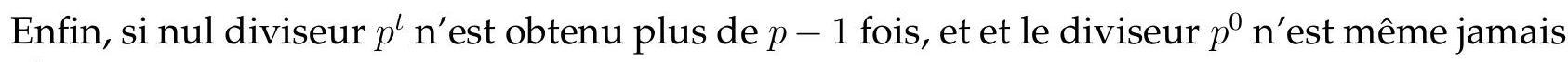 {"year": "2021", "problem_label": "3", "tier": 1, "problem": "Étant donnés deux entiers naturels non nuls $a$ et $b$, on dit que $b$ est $a$-gréable si, pour toute liste $d_{1}, d_{2}, \\ldots, d_{k}$ de diviseurs de $b$, non nécessairement distincts, telle que\n\n$$\n\\frac{1}{d_{1}}+\\frac{1}{d_{2}}+\\ldots+\\frac{1}{d_{k}}>a\n$$\n\nil existe un ensemble $I$ inclus dans $\\{1,2, \\ldots, k\\}$ tel que\n\n$$\n\\sum_{i \\in I} \\frac{1}{d_{i}}=a\n$$\n\nL'entier $a$ étant fixé, quels sont les entiers $a$-gréables?", "solution": "$n^{\\circ} 1$ Voici une manière alternative de démontrer que toute puissance de nombre premier est $a$-gréable. Nous allons démontrer par récurrence forte sur $k$ la propriété $\\mathcal{P}_{k}$ suivante:\n\nPour tout entier $a \\geqslant 0$, toute puissance de nombre premier $n=p^{\\alpha}$ et toute suite $\\left(d_{i}\\right)_{1 \\leqslant i \\leqslant k}$ formée de $k$ diviseurs de $n$ telle que\n\n$$\n\\frac{1}{d_{1}}+\\frac{1}{d_{2}}+\\ldots+\\frac{1}{d_{k}} \\geqslant a\n$$\n\nil existe un entier $I$ inclus dans $\\{1,2, \\ldots, k\\}$ pour lequel\n\n$$\n\\sum_{i \\in I} \\frac{1}{d_{i}} \\neq a\n$$\n\nTout d'abord, si $k=0$, la somme des inverses des diviseurs $d_{i}$ est nulle, donc $a=0$ et choisir $I=\\emptyset$ nous assure que\n\n$$\n\\sum_{i \\in I} \\frac{1}{d_{i}}=0=a\n$$\n\nAinsi, $\\mathcal{P}_{0}$ est vraie.\nOn considère maintenant un entier $k \\geqslant 1$ tel que $\\mathcal{P}_{0}, \\ldots, \\mathcal{P}_{k-1}$ soient vraies, puis un entier $a \\geqslant 0$, un nombre premier $n=p^{\\alpha}$ et une suite $\\left(d_{i}\\right)_{1 \\leqslant i \\leqslant k}$ formée de $k$ diviseurs de $n$ telle que\n\n$$\n\\frac{1}{d_{1}}+\\frac{1}{d_{2}}+\\ldots+\\frac{1}{d_{k}} \\geqslant a\n$$\n\nSi l'un des diviseurs $d_{i}$ est égal à 1 , et quitte à réordonner les nombres $d_{i}$, on suppose que $i=k$. Mais alors\n\n$$\n\\frac{1}{d_{1}}+\\frac{1}{d_{2}}+\\ldots+\\frac{1}{d_{k-1}} \\geqslant a-1\n$$\n\nD'après $\\mathcal{P}_{k-1}$, il existe donc un ensemble $J$ inclus dans $\\{1,2, \\ldots, k-1\\}$ tel que\n\n$$\n\\sum_{i \\in J} \\frac{1}{d_{i}}=a-1\n$$\n\nde sorte que choisir $I=J \\cup\\{k\\}$ nous permet d'obtenir l'égalité\n\n$$\n\\sum_{i \\in J} \\frac{1}{d_{i}}=a\n$$\n\nDe même, si $k \\geqslant p$ et s'il existe $p$ diviseurs $d_{i}$ égaux à un même nombre $p^{t}$, avec $t \\geqslant 1$, on suppose sans perte de généralité qu'il s'agit des diviseurs $d_{1}, d_{2}, \\ldots, d_{p}$. Quitte à remplacer ces $p$ diviseurs par un nouveau diviseur $d_{p}^{\\prime}=p^{t-1}$, et à poser $d_{i}^{\\prime}=d_{i}$ lorsque $p+1 \\leqslant i \\leqslant k$, on sait que\n\n$$\n\\frac{1}{d_{p}^{\\prime}}+\\frac{1}{d_{p+1}^{\\prime}}+\\ldots+\\frac{1}{d_{k}^{\\prime}}=\\frac{1}{d_{1}}+\\frac{1}{d_{2}}+\\ldots+\\frac{1}{d_{k}} \\geqslant a\n$$\n\nD'après $\\mathcal{P}_{k-p+1}$, il existe un ensemble $J$ inclus dans $\\{p, p+1, \\ldots, k\\}$ tel que\n\n$$\n\\sum_{i \\in J} \\frac{1}{d_{i}^{\\prime}}=a\n$$\n\nMais alors choisir $I=J$ si $p \\notin J$, ou bien $I=J \\cup\\{1,2, \\ldots, p-1\\}$ si $p \\in J$, nous permet d'obtenir l'égalité\n\n$$\n\\sum_{i \\in J} \\frac{1}{d_{i}}=a\n$$\n\n obtenu, on sait que\n\n$$\n\\sum_{i=1}^{k} \\frac{1}{d_{i}} \\leqslant \\sum_{t=1}^{\\alpha} \\frac{p-1}{p^{t}}<1\n$$\n\nde sorte que $a=0$, donc que choisir $I=\\emptyset$ permet d'obtenir l'égalité\n\n$$\n\\sum_{i \\in I} \\frac{1}{d_{i}}=0=a\n$$\n\nAinsi, $\\mathcal{P}_{k}$ est vraie. Ceci conclut notre récurrence et notre démonstration.\n\nCommentaire des correcteurs Le problème a été correctement résolu par une douzaine d'élèves et était plutôt difficile. Voici quelques remarques sur le problème et sur les solutions proposées :\n$\\triangleright$ Les élèves ont fait dans l'ensemble assez peu d'erreurs : les copies ayant perdu des points ont en général fait des oublis ou n'ont pas démontré ce qu'elles avançaient.\n$\\triangleright \\mathrm{Il}$ faut faire attention à démontrer ce que l'on affirme : plusieurs copies donnent une suite pour montrer qu'un entier n'est pas $a$-gréable sans démontrer qu'elle convient.\n$\\triangleright$ La conclusion obtenue sur les entiers $a$-gréables est parfois fausse à cause d'une mauvaise compréhension de la condition obtenue : les entiers $b$ ne possédant pas deux diviseurs (différents de 1) premiers entre eux sont les puissances de premiers.\n$\\triangleright$ Plusieurs élèves utilisent une récurrence pour montrer que les puissances de premiers sont bien $a$-gréables mais ne la rédigent pas correctement. Même si cela n'était pas pénalisé ici, il faut faire attention à bien détailler les éléments de la preuve : certains ont oublié des éléments en allant trop vite.\n$\\triangleright$ Un nombre conséquent d'élèves étudient certains cas particuliers, par exemple celui où $b$ est premier. Bien que cela soit souvent pertinent pour l'étude d'un problème, il faut être conscient que l'étude de cas particuliers est en général peu récompensée. Il faut mieux résoudre un problème entièrement que d'essayer de « grappiller » des points sur chaque problème. Enfin, et comme mentionné au problème précédent, il est beaucoup plus stratégique de traiter les problèmes dans l'ordre.", "problem_match": "\nExercice 3.", "solution_match": "\nSolution alternative"}