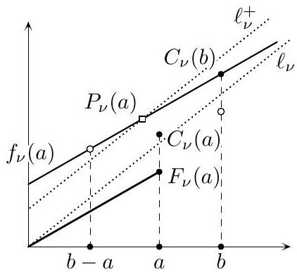 b \geqslant k+\omega$, which is absurd. Similarly, $m \geqslant r$ leads to $r a-m b0} +$$ + +Now suppose first that $x$ is not an integer but can be written in the form $\frac{p}{q}$ with $p \in \mathbb{Z}$ and $q \in \mathbb{Z}_{>0}$ both being odd. Let $d$ denote the multiplicative order of 2 modulo $q$ and let $m$ be any large integer. Plugging $n=d m$ into (6) and using (2) we get + +$$ +f(x)=\left[\frac{f\left(2^{d m} x\right)}{2^{d m}}\right]=\left[\frac{f(x)+\left(2^{d m}-1\right) x}{2^{d m}}\right]=\left[x+\frac{f(x)-x}{2^{d m}}\right] . +$$ + +Since $x$ is not an integer, the square bracket function is continuous at $x$; hence as $m$ tends to infinity the above fomula gives $f(x)=[x]$. To complete the argument we just need to observe that if some $y \in \mathbb{Q}$ satisfies $f(y)=[y]$, then (5) yields $f\left(\frac{y}{2}\right)=f\left(\frac{[y]}{2}\right)=\left[\frac{[y]}{2}\right]=\left[\frac{y}{2}\right]$. + +Solution 2. Here we just give another argument for the second case of the above solution. Again we use equation (2). It follows that the set $S$ of all zeros of $f$ contains for each $x \in \mathbb{Q}$ exactly one term from the infinite sequence $\ldots, x-2, x-1, x, x+1, x+2, \ldots$. + +Next we claim that + +$$ +\text { if }(p, q) \in \mathbb{Z} \times \mathbb{Z}_{>0} \text { and } \frac{p}{q} \in S \text {, then } \frac{p}{q+1} \in S \text { holds as well. } +$$ + +To see this we just plug $\left(\frac{p}{q}, p, q+1\right)$ into (1), thus getting $f\left(\frac{p}{q+1}\right)=f\left(\frac{p}{q}\right)=0$. + +From this we get that + +$$ +\text { if } x, y \in \mathbb{Q}, x>y>0 \text {, and } x \in S \text {, then } y \in S \text {. } +$$ + +Indeed, if we write $x=\frac{p}{q}$ and $y=\frac{r}{s}$ with $p, q, r, s \in \mathbb{Z}_{>0}$, then $p s>q r$ and (7) tells us + +$$ +0=f\left(\frac{p}{q}\right)=f\left(\frac{p r}{q r}\right)=f\left(\frac{p r}{q r+1}\right)=\ldots=f\left(\frac{p r}{p s}\right)=f\left(\frac{r}{s}\right) +$$ + +Essentially the same argument also establishes that + +$$ +\text { if } x, y \in \mathbb{Q}, x 2 m$. Such a pair is necessarily a child of $(c, d-c)$, and thus a descendant of some pair $\left(c, d^{\prime}\right)$ with $m \{(b+k a) \nu\}=\left\{\left(b+k_{0} a\right) \nu\right\}+\left(k-k_{0}\right)\{a \nu\}$ for all $k>k_{0}$, which is absurd. + +Similarly, one can prove that $S_{m}$ contains finitely many pairs $(c, d)$ with $c>2 m$, thus finitely many elements at all. + +We are now prepared for proving the following crucial lemma. + +Lemma. Consider any pair $(a, b)$ with $f(a, b) \neq m$. Then the number $g(a, b)$ of its $m$-excellent descendants is equal to the number $h(a, b)$ of ways to represent the number $t=m-f(a, b)$ as $t=k a+\ell b$ with $k$ and $\ell$ being some nonnegative integers. + +Proof. We proceed by induction on the number $N$ of descendants of $(a, b)$ in $S_{m}$. If $N=0$ then clearly $g(a, b)=0$. Assume that $h(a, b)>0$; without loss of generality, we have $a \leqslant b$. Then, clearly, $m-f(a, b) \geqslant a$, so $f(a, b+a) \leqslant f(a, b)+a \leqslant m$ and $a \leqslant m$, hence $(a, b+a) \in S_{m}$ which is impossible. Thus in the base case we have $g(a, b)=h(a, b)=0$, as desired. + +Now let $N>0$. Assume that $f(a+b, b)=f(a, b)+b$ and $f(a, b+a)=f(a, b)$ (the other case is similar). If $f(a, b)+b \neq m$, then by the induction hypothesis we have + +$$ +g(a, b)=g(a+b, b)+g(a, b+a)=h(a+b, b)+h(a, b+a) +$$ + +Notice that both pairs $(a+b, b)$ and $(a, b+a)$ are descendants of $(a, b)$ and thus each of them has strictly less descendants in $S_{m}$ than $(a, b)$ does. + +Next, each one of the $h(a+b, b)$ representations of $m-f(a+b, b)=m-b-f(a, b)$ as the sum $k^{\prime}(a+b)+\ell^{\prime} b$ provides the representation $m-f(a, b)=k a+\ell b$ with $k=k^{\prime} 1} d=\sum_{d \mid m} d +$$ + +as required. + +Comment. Let us present a sketch of an outline of a different solution. The plan is to check that the number of excellent pairs does not depend on the (irrational) number $\nu$, and to find this number for some appropriate value of $\nu$. For that, we first introduce some geometrical language. We deal only with the excellent pairs $(a, b)$ with $a \neq b$. + +Part I. Given an irrational positive $\nu$, for every positive integer $n$ we introduce two integral points $F_{\nu}(n)=$ $(n,\lfloor n \nu\rfloor)$ and $C_{\nu}(n)=(n,\lceil n \nu\rceil)$ on the coordinate plane $O x y$. Then $(*)$ reads as $\left[O F_{\nu}(a) C_{\nu}(b)\right]=m / 2$; here $[\cdot]$ stands for the signed area. Next, we rewrite in these terms the condition on a pair $(a, b)$ to be excellent. Let $\ell_{\nu}, \ell_{\nu}^{+}$, and $\ell_{\nu}^{-}$be the lines determined by the equations $y=\nu x, y=\nu x+1$, and $y=\nu x-1$, respectively. + +a). Firstly, we deal with all excellent pairs $(a, b)$ with $aa$ is excellent exactly when $p_{\nu}(a)$ lies between $b-a$ and $b$, and the point of $f_{\nu}(a)$ with abscissa $b$ is integral (which means that this point is $C_{\nu}(b)$ ). + +Notice now that, if $p_{\nu}(a)>a$, then the number of excellent pairs of the form $(a, b)$ (with $b>a$ ) is $\operatorname{gcd}(a,\lfloor a \nu\rfloor)$. + + + +Figure 1 + + + +Figure 2 + +b). Analogously, considering the pairs $(a, b)$ with $a>b$, we fix the value of $b$, introduce the line $c_{\nu}(b)$ containing all the points $F$ with $\left[O F C_{\nu}(b)\right]=m / 2$, assume that this line contains an integral point (which means $\operatorname{gcd}(b,\lceil b \nu\rceil) \mid m$ ), and denote the common point of $c_{\nu}(b)$ and $\ell_{\nu}^{-}$by $Q_{\nu}(b)$, its abscissa being $q_{\nu}(b)$. Similarly to the previous case, we obtain that the pair $(a, b)$ is excellent exactly when $q_{\nu}(a)$ lies between $a-b$ and $a$, and the point of $c_{\nu}(b)$ with abscissa $a$ is integral (see Fig. 2). Again, if $q_{\nu}(b)>b$, then the number of excellent pairs of the form $(a, b)$ (with $a>b)$ is $\operatorname{gcd}(b,\lceil b \nu\rceil)$. + +Part II, sketchy. Havin