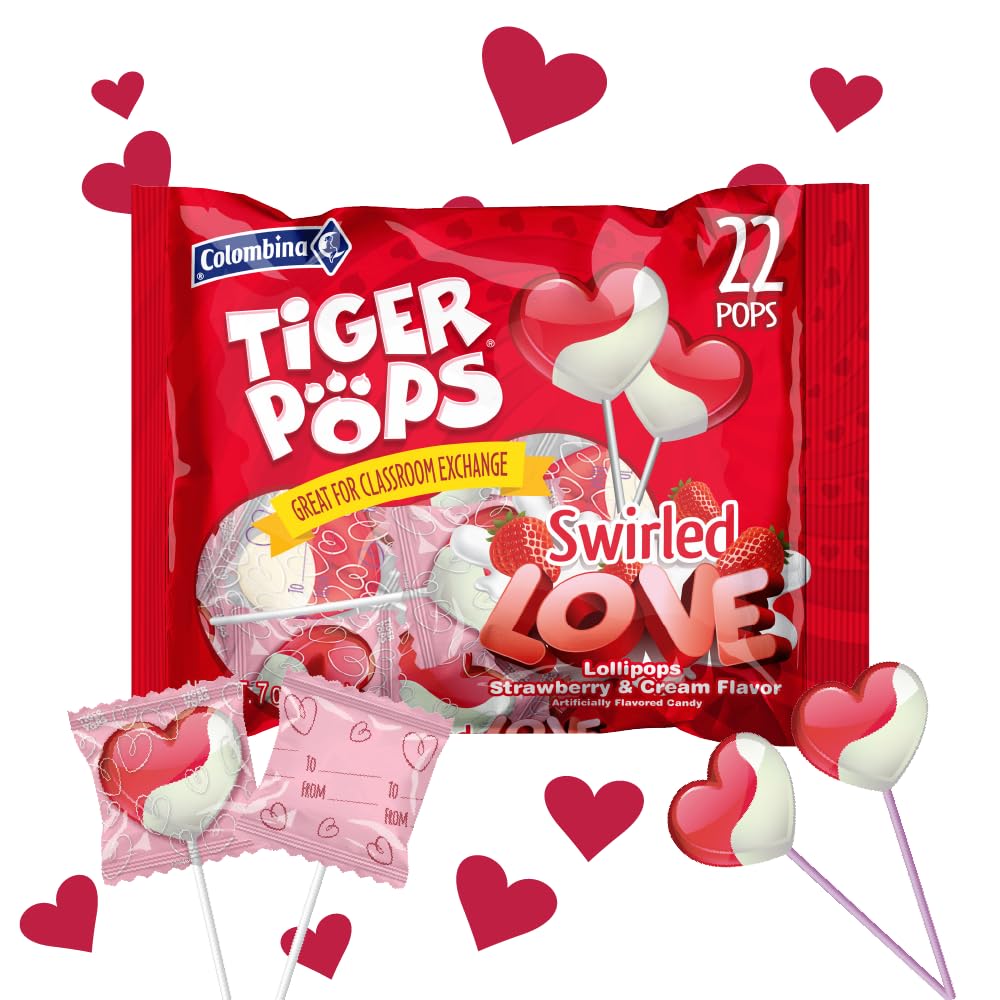 Item Name: Colombina Swirled Love Tiger Pops, Strawberry and Cream Flavored, Individually Wrapped Lollipops, Perfect for Valentine's Day Gifts, 22 Count (Pack of 1)