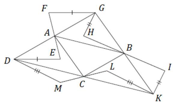 $\angle D B E=\angle D B A+\angle E B C-\angle A B C=\left(180^{\circ}-\alpha\right) / 2+\left(180^{\circ}-\beta\right) / 2-120^{\circ}=60^{\circ}-(\alpha+\beta) / 2=30^{\circ}$.