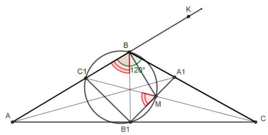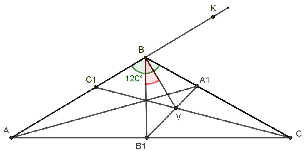 4. In $\triangle A B C$ with $\angle B=120^{0}$, the angle bisectors $A A_{1}, B B_{1}, C C_{1}$ are drawn.