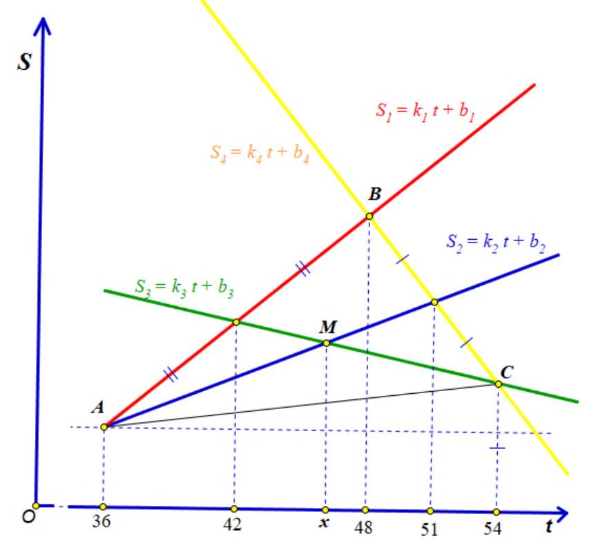Answer: when $a=1, b=10, c=4 \quad x=8, S_{\triangle M C S}=6$.