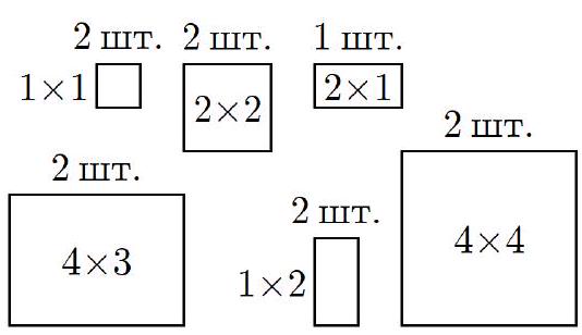 Criteria. If the perimeter is given instead of the area - 3 points. Any trial and error in selecting lengths (or the lengths of the numbered rectangles are simply stated without justification) - 0 points.
