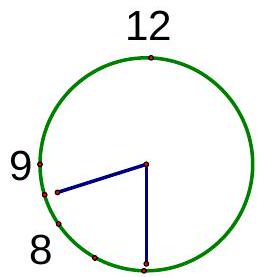 2. The clock shows half past eight. What is the angle between the hour and minute hands?