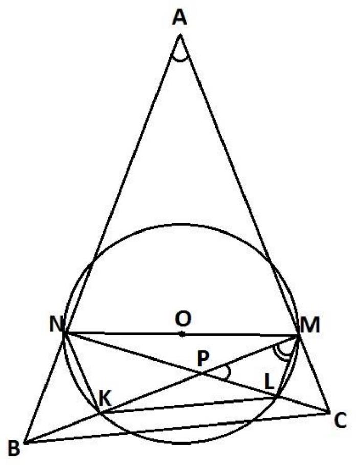 \frac{K L}{\sin \left(90^{\circ}-A\right)}=2 R=2 N O=M N