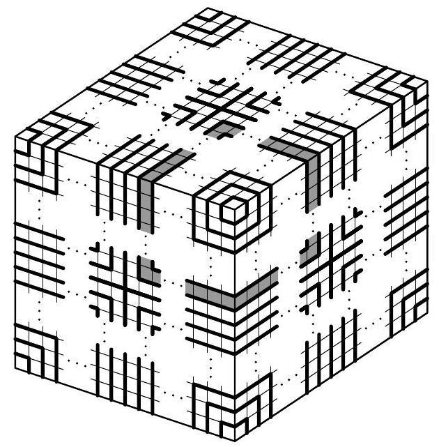 Solution. See example in the figure (the digit 1 is in the cells marked the first time, the digit 2 - the second time)