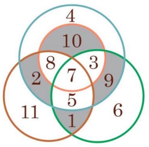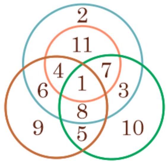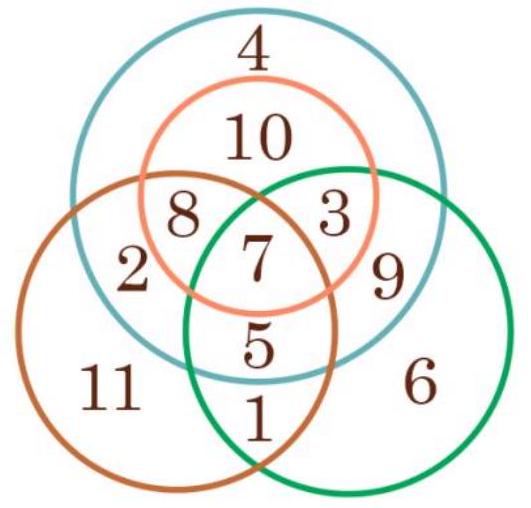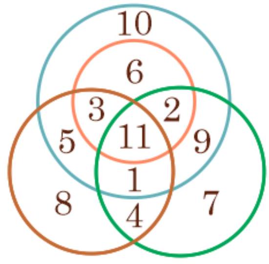 \(\pm\) The number of pies of only one type or the total number of pies is correctly found, but the complete answer is not obtained