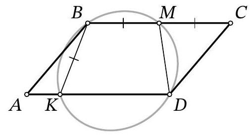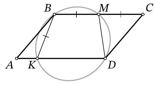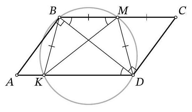 Thus, $A B M C$ is a parallelogram, but this is not the case, because angle $B M C$, lying in this parallelogram, is greater than a straight angle.