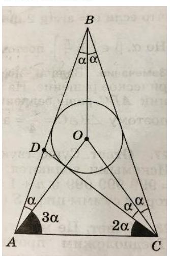 11.3. Answer. $\angle A=\angle C=72^{\circ}, \angle B=36^{\circ}$.