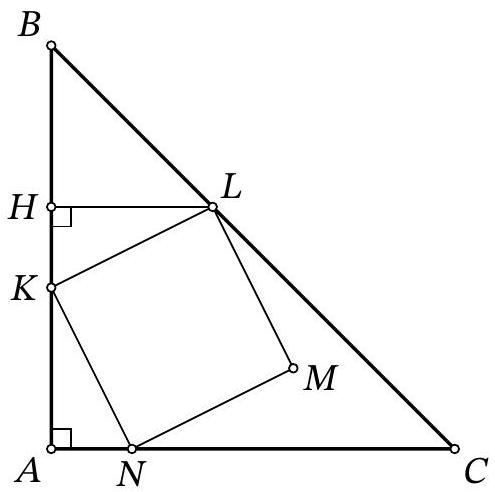 Third method. Extend the segment $K M$ to intersect the line $A B$ at point $P$ (see Fig. 8.5b). Then $\angle P M B=\angle C M K=\angle A M B$. Therefore, the right triangles $P M B$ and $A M B$ are equal (by leg and acute angle), then $P B=A B$, that is, $A P=2 a$, where $a$ is the side of the given square, and $P M=A M$.