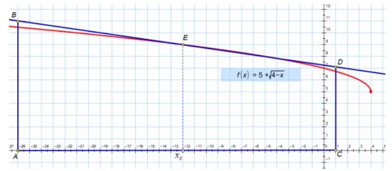 The condition for the minimum of the function is equivalent to the condition for the minimum of $\mathrm{M}$, under which the given line will be tangent to the circle. That is, the distance from the center of the circle to the line is equal to its radius.
