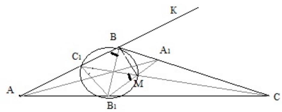 Extend side $A B$ beyond point $B$, then $B C$ is the bisector of angle $\angle B B_{1} B K$, which means point $A_{1}$ is equidistant from sides $B_{1} B$ and $B K$.