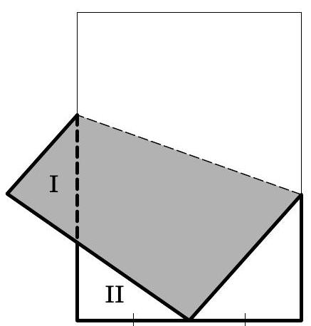 Comment. By applying the Pythagorean theorem, we can find the lengths of the sides of triangles I and II. It turns out that these are Egyptian triangles - triangles with sides 3, 4, and 5.