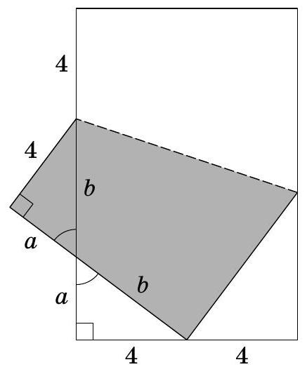 Problem 4. A rectangular sheet of paper was folded, aligning a vertex with the midpoint of the opposite shorter side (Fig. 12). It turned out that triangles I and II are equal. Find the longer side of the rectangle if the shorter side is 8.