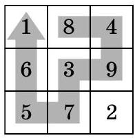 This password meets Vanya's requirements. Let's see how we can connect its digits without any intersections. The digit 7 must be connected to some digit, which can be either 2 or 6. Suppose, for example, we draw the segment $7-6$. Now 9 can only be connected to 6. Next, it is inevitable to draw the segments $7-2$ and $2-1$, and we get the line shown in the figure. If we had drawn $7-2$ instead of $7-6$ first, the line would have been the same. Thus, this line is unique.