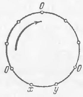 $x+y=0$, or $x-y=0$ and, therefore, one of the elements of the sequence adjacent to the pair $x, y$ is equal to zero. By problem 117, the second element adjacent to this pair is also equal to zero. From this, it follows that $x=y$, and since the sequence in question is a sequence without repetitions, it has the form shown in Fig. 144.