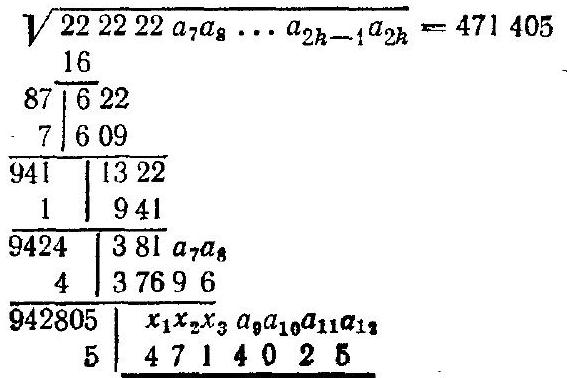 & \sqrt{222222 a_{7} a_{5} a_{9} \ldots a_{2 k} a_{2 k+1}}=149071 \ldots \\