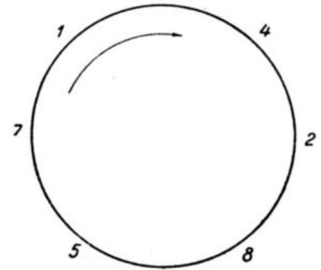 Summing up, we get \( 21N = 2999997 \), from which \( N = 142857 \). The numbers \( N, 2N, 3N, 4N, 5N \), and \( 6N \) can be easily read using the circle (Fig. 10).