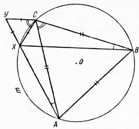 40. The angle $A$ at the vertex of the isosceles triangle $A B C$ is $100^{\circ}$. On the ray $A B$, a segment $A M$ is laid off, equal to the base $B C$. Find the measure of angle $B C M$.