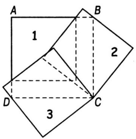 271. Three tablecloths measuring \(144 \times 144\) cm will cover a table measuring \(183 \times 183\) cm if they are placed as shown in the figure. Square \(A B C D\) is the tabletop, and squares 1, 2, and 3 are the tablecloths. Parts of the second and third tablecloths, of course, will hang off the table.