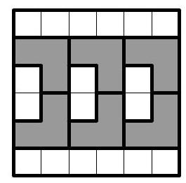 and it intersects a maximum of two sides of the large part, turning one large side into two small sides (+2).
