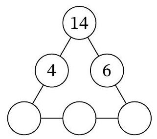 Solution. Let $a, b, c$ be the natural numbers in the three lower circles, from left to right. According to the condition, $14 \cdot 4 \cdot a = 14 \cdot 6 \cdot c$, i.e., $2a = 3c$. From this, it follows that $3c$ is even, and therefore $c$ is even. Thus, $c = 2k$ for some natural number $k$, and from the equation $2a = 3c$ it follows that $a = 3k$.