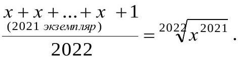 & \frac{2020 x+1}{2021}=\sqrt[202]{x^{2020}}, \text { from which } \\