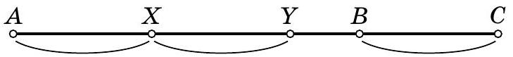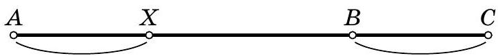 In the first case, the bus was at point $X$ and the distance from it to $C$ was equal to the sum of the distances to $A$ and to $B$. But this distance is also equal to the sum of the distance to $B$ and the distance $B C$. Therefore, the bus had traveled exactly the distance $B C$. On the diagram, we marked equal distances with arcs.