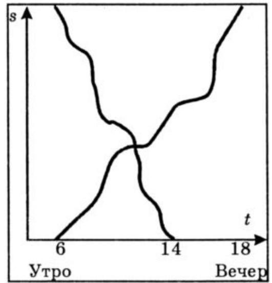 Solution. Let the motorcyclist and the cyclist have been on the road for $t$ hours before meeting. If $v_{1}$ kilometers per hour is the speed of the motorcyclist, and $v_{2}$ kilometers per hour is the speed of the cyclist, then we have the system of equations: