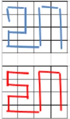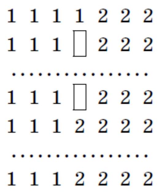 Notice that one of the cells numbered 1 must be open, otherwise the red and blue ways of filling the table in Figure 2 would be indistinguishable. One of the cells numbered 2 must also be open, otherwise the red and blue ways of filling the table in Figure 3 would be indistinguishable.