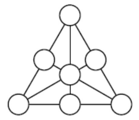If there are fewer than nine pastries, and the number of circles is also seven, then, as shown above, we prove that for nine pastries, the number of circles is more than seven. Contradiction.