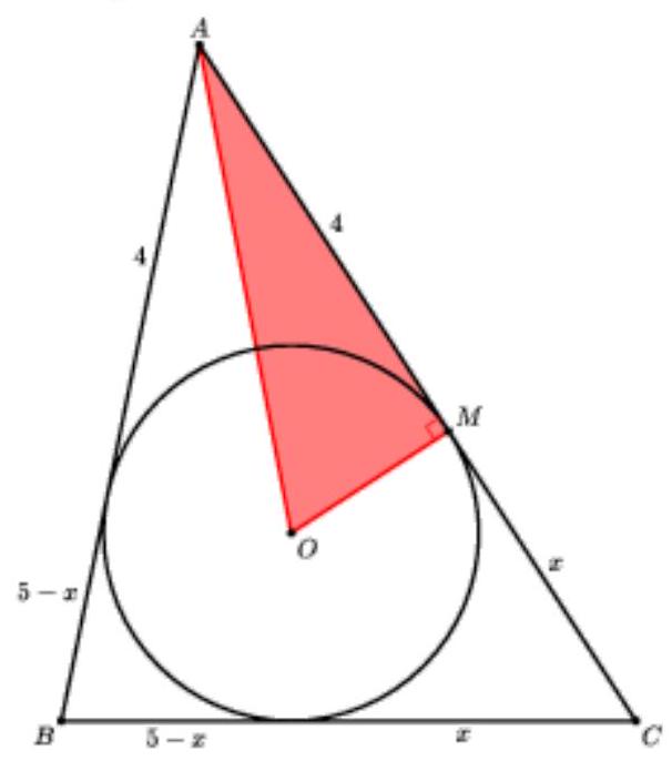 Let $r$ be the radius of the circle inscribed in triangle $ABC$, and $p$ be the semiperimeter of triangle $ABC$. Then,
