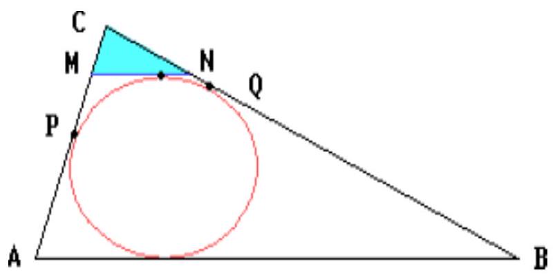 We will prove that the center $Q$ of the circle inscribed in triangle $AMN$ lies on the inscribed circle of triangle $ABC$. Indeed, let $Q'$ be the midpoint of the smaller arc $MN$ of the inscribed circle of triangle $ABC$. From the theorem about the angle between a tangent and a chord, it follows that