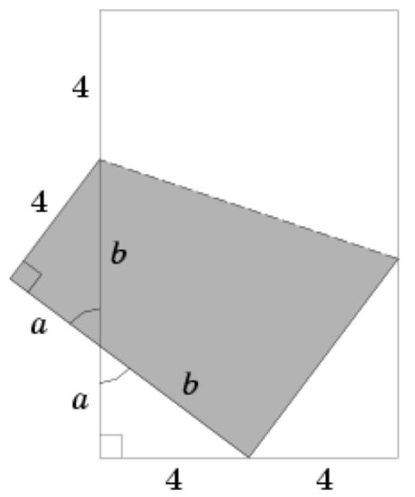 We see that the length of the smaller side is $a+b$. Therefore, $a+b=8$ and the larger side has a length of $a+b+4=$ $8+4=12$.
