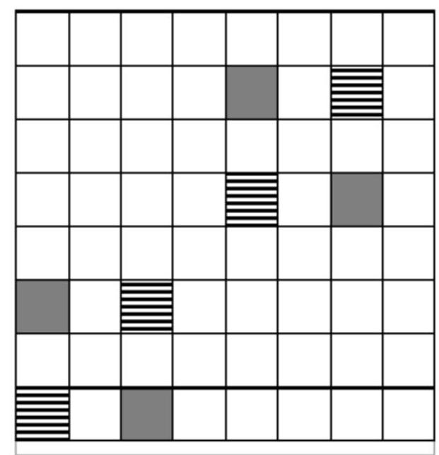 Example. The nine black cells in the figure satisfy both conditions.