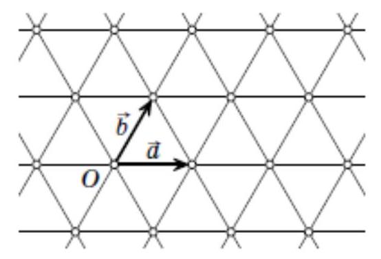 Proof of the lemma. Introduce the origin at one of the grid nodes and denote by $\$ \mid vec\{a\} \$$ and $\$ \operatorname{vec}\{b\} \$$ the radius vectors to the two nearest nodes, as shown in the figure. Then the grid nodes are points of the form $\$ m \mid vec\{a\} + n \mid vec\{b\} \$$ for integers \$m $\$$ and \$n\$. By the pigeonhole principle, among five points, there will be two points $\$ m_1 \mid vec\{a\} + n_1 \mid vec\{b\} \$$ and $\$ m_2 \mid vec\{a\} + n_2 \mid vec\{b\} \$$, for which the parity of \$m_1 \$$ and \$m_2 \$$ and the parity of \$n_1 \$$ and \$n_2 \$$ coincide simultaneously. The midpoint of the segment connecting these two points is the point $\$ \frac{m_1 + m_2}{2} \mid vec\{a\} + \frac{n_1 + n_2}{2} \mid vec\{b\} \$$, which is a grid node because the numbers $\$ \frac{m_1 + m_2}{2} \$$ and $\$ \frac{n_1 + n_2}{2} \$$ are integers due to the same parity of \$m_1 \$$ and \$m_2 \$$ and \$n_1 \$$ and \$n_2 \$$.