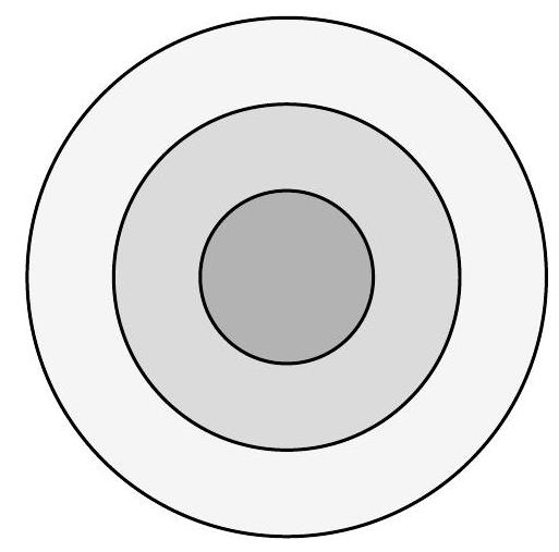 Draw two circles with the same center, one with a radius of $1 \mathrm{~cm}$ and the other with a radius of $3 \mathrm{~cm}$. In the region outside the circle with a radius of $1 \mathrm{~cm}$ and inside the circle with a radius of $3 \mathrm{~cm}$, draw circles that are simultaneously tangent to both circles, as shown in the figure below.