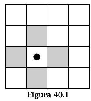 For example, in Figure 40.1, considering the cell marked with $\bullet$, the sum of the numbers in the shaded cells is equal to 1.