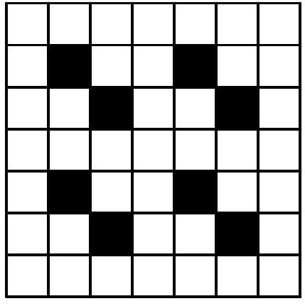 The entire room can be divided into squares with a side of 10 meters as shown in the image. The parts of the room visible to each guard are marked with two types of hatching. The part that both guards can see is thus doubly hatched: