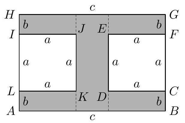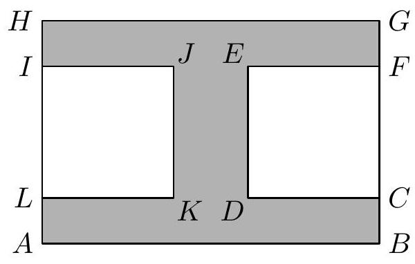 Two guards are overseeing the order in a room whose shape and dimensions are shown in the diagram. Each two adjacent walls are perpendicular to each other, and the dimensions are given in meters. The guards stand close to the wall at the locations marked with squares. Together, they can oversee the entire room, but only a part of the room can be overseen by both at the same time.