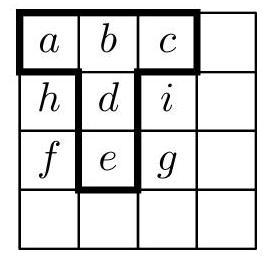 Note. Each of the four corner cells contributes to two sums, and each of the remaining four cells along the sides contributes to one sum. Therefore, the sum of all four sums along the sides is at least
