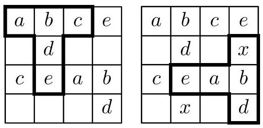 In both cases, the numbers 1, 2, and 3 are among the numbers written in the corners of the table. Let's try to see if they can be written in the corners of the table in such a way that we can fill the entire table as required.