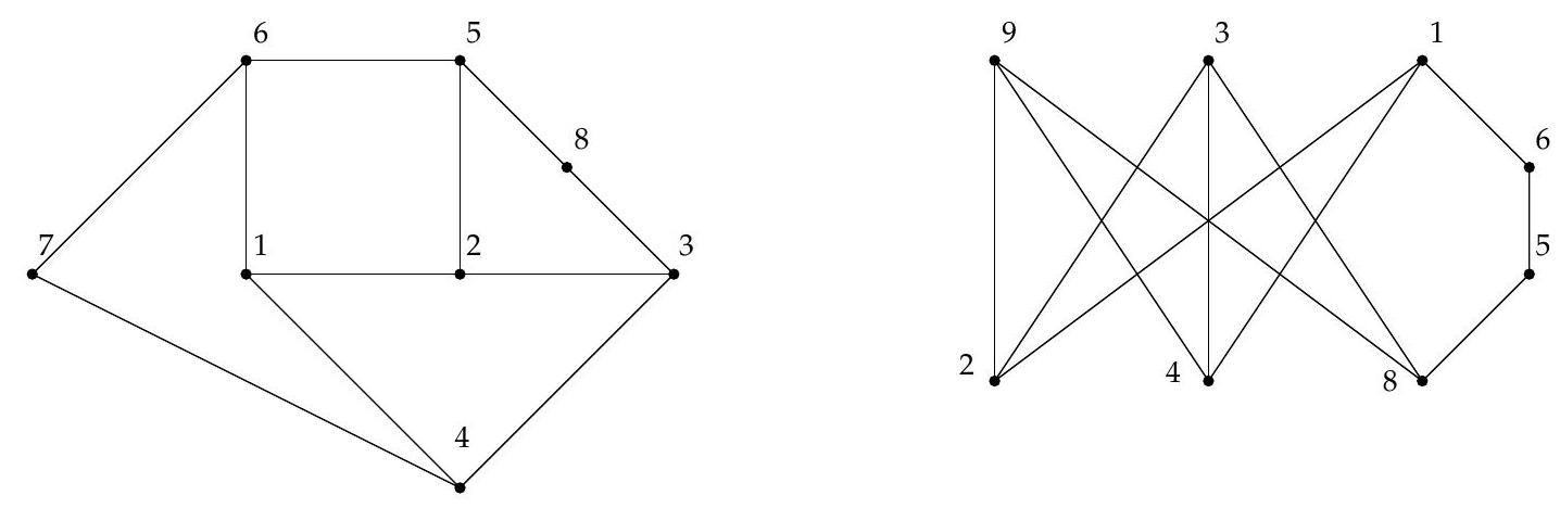 Definition 3. A graph is said to be Eulerian if there exists a path that passes through each e... | It is possible to draw $\mathcal{G}_{8}$ in the plane, but arranging $\mathcal{G}_{9}$ can result in the graph of the three houses and three factories, which is not planar.